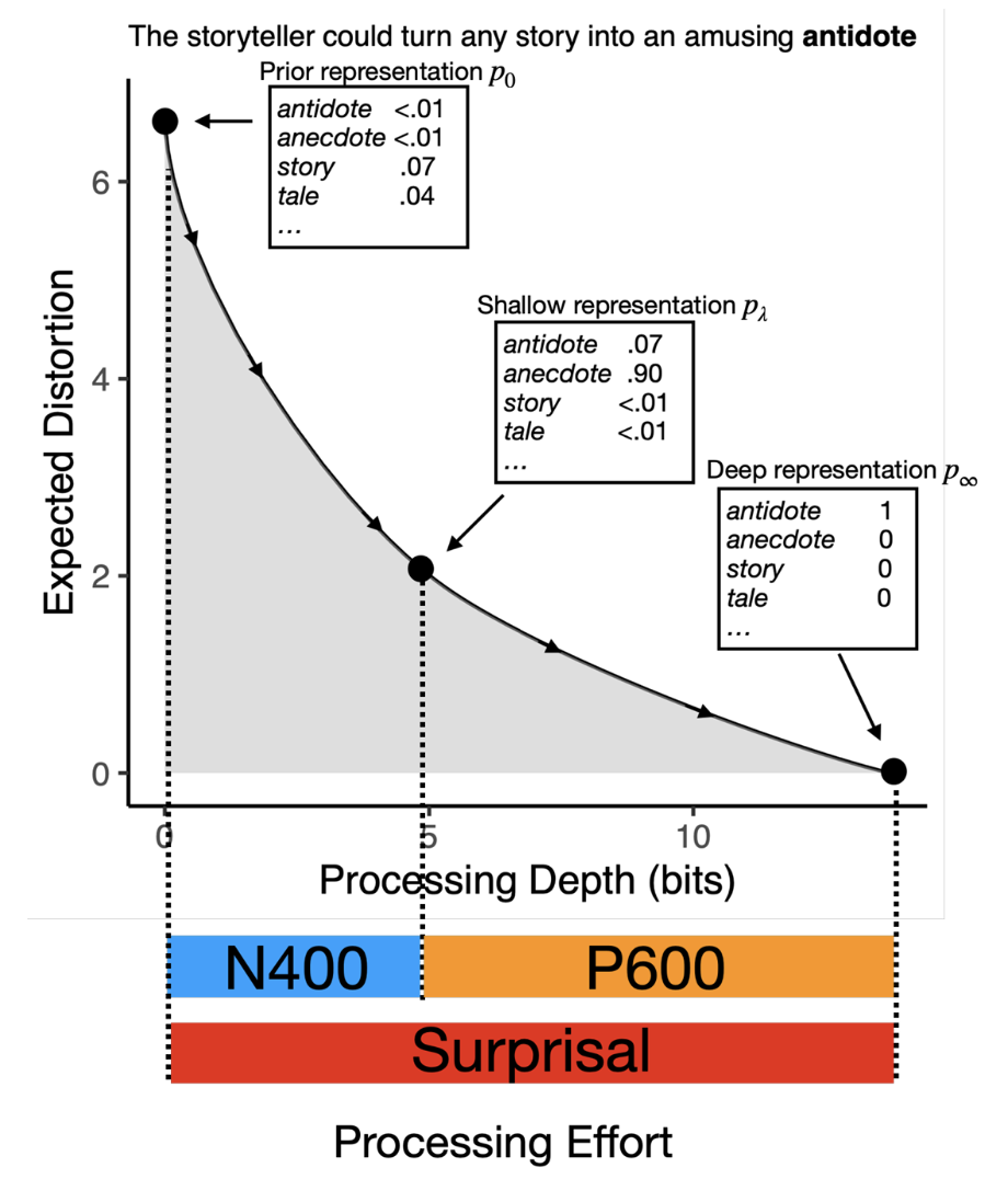 | | | | | Decomposition of surprisal: Unified computational model of ERP components in language processing | | Jiaxuan Li and Richard Futrell. Department of Language Science, University of California Irvine | | | | | | Вторая линия исследований — использование больших языковых моделей как «тест-полигона» для проверки пределов человеческого мышления. Здесь учёные намеренно ставят модели и людей в одинаковые условия и ищут расхождения. Например, модели можно искусственно разрешить «удерживать» не больше двух фраз одновременно; когда это ограничение вводят, её прогнозы времени чтения и вероятность ошибок становятся похожими на человеческие данные, что подтверждает гипотезу о малом количестве параллельно рассматриваемых предсказаний человеком. Похожим образом проверяют так называемый порог неразличения частотности: люди почти не замечают разницу между очень редкими словами, тогда как модель различает их без труда. Если задать модели упрощённый «порог», численные результаты вновь приближаются к поведению читателей. | | | Hahn, M., Futrell, R., Levy, R., & Gibson, E. (2022). A resource-rational model of human processing of recursive linguistic structure. Proceedings of the National Academy of Sciences, 119(43), e2122602119. https://doi.org/10.1073/pnas.2122602119Andrea de Varda, A., & Marelli, M. (2024). Locally Biased Transformers Better Align with Human Reading Times. In T. Kuribayashi, G. Rambelli, E. Takmaz, P. Wicke, & Y. Oseki (Eds.), Proceedings of the Workshop on Cognitive Modeling and Computational Linguistics (pp. 30–36). Association for Computational Linguistics. https://doi.org/10.18653/v1/2024.cmcl-1.3 Kuribayashi, T., Oseki, Y., Brassard, A., & Inui, K. (2022). Context limitations make neural language models more human-like. Proceedings of the 2022 Conference on Empirical Methods in Natural Language Processing. EMNLP 2022. https://doi.org/10.18653/v1/2022.emnlp-main.712 | | | | Третья линия исследований — поиск универсальных «языковых правил-по-умолчанию», или баясов. Лингвисты давно замечают, что во всех языках мира встречаются одни и те же запреты: например, нельзя выносить часть сложного вопроса слишком далеко от глагола (так называемые «синтаксические острова»).